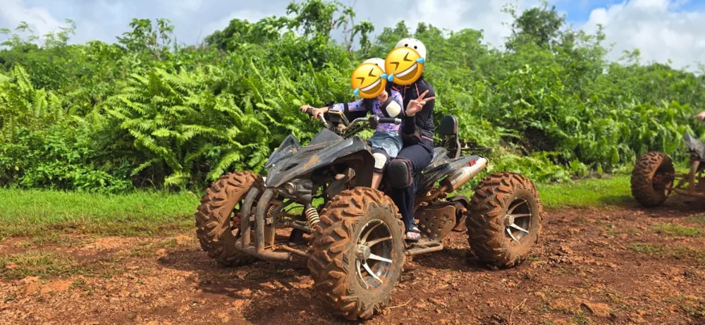 우리 가족은 ATV체험을 했어요! 60대 후반인 아버지와 50대 후반인 어머니도 즐거워하셨습니다! 처음 탈 땐 연습처럼 천천히 갔는데 돌아올 땐 스릴을 즐기고싶은 팀과 천천히 달리고 싶은 팀을 나눠서 즐거움이 두 배였어요 코스가 ATV를 충분히 즐길 수 있을 만큼 정말 긴 편이라 이렇게 타는 게 딱이었어요! 돌아오면 대표님께서 괌에 내려오는 전설을 얘기해주시고 약간의 체험학습이 있어서 알차고 좋았습니다^^ 사진은 대표님께서 찍어주셨는데 진짜 잘 나와서 같이 올려봐요~ 참고로 대표님께서 한국인이세요 진짜 친절하신데 언어가 통하니까 마음이 두배로 편하더라고요 ㅎㅎ 괌 여행 중 즐긴 투어 중에 가장 재미있었는데 괌조아닷컴에는 후기가 하나도 없는 게 이상해서 늦게나마 후기를 작성해봐요~